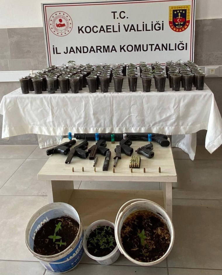 Kocaeli İl Jandarma Komutanlığınca uyuşturucu ile mücadele çalışmaları neticesinde dün Derince ilçesinde bir şahsın adresinde operasyon düzenlendi. Operasyon neticesinde evde yapılan aramada 580 kök kenevir bitkisi, 5 ruhsatsız tabanca, ruhsatsız av tüfeği, 8 tabanca fişeği, 50 gaz tabancası fişeği ve 6 tabanca şarjörü ele geçirildi. Malzemelere el koyulurken olayla ilgili şüpheli gözaltına alındı.