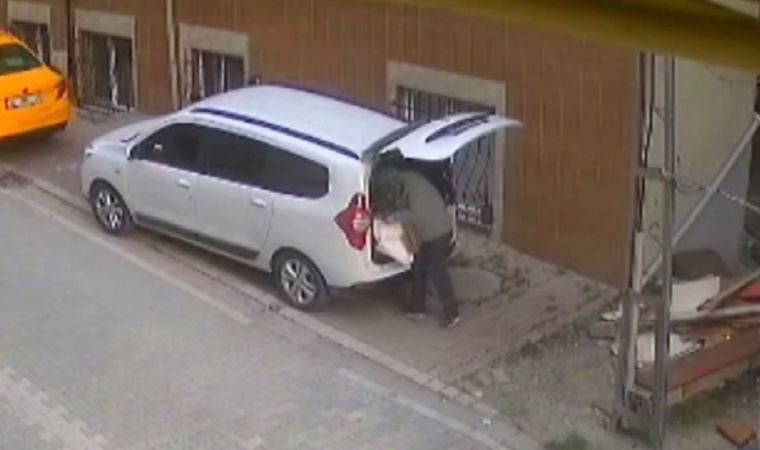İçeride bir süre bakındıktan sonra bagaj kısmındaki poşeti çalan şahıs, tam uzaklaşırken şans eseri evine gelen araç sahibine yakalandı.