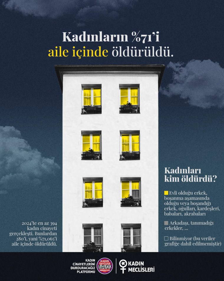 Rapora göre 2024 yılında 394 kadın katledildi, 259 kadın ise şüpheli şekilde ölü bulundu. Platform 10 yıldaki en yüksek kadın cinayeti verisi olduğunu dile getirdi.