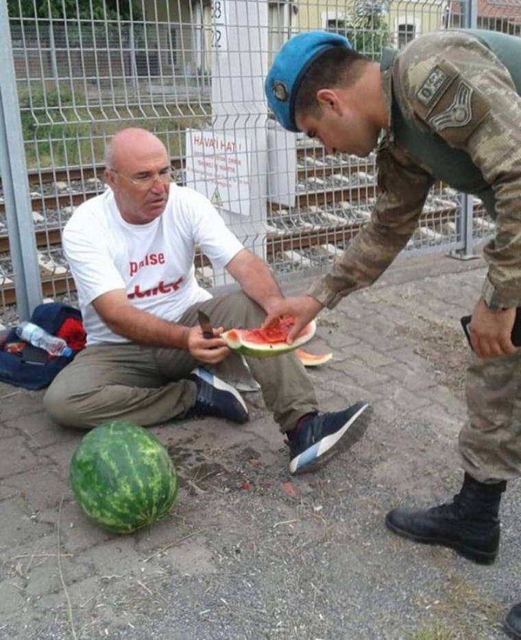6. Adalet yürüyüşünde yolda kestiği karpuzu askere ikram etmesi.