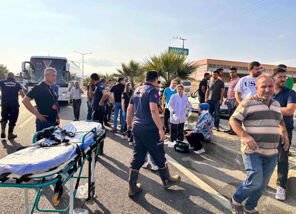 Turgutlu'dan İzmir yönüne giden ve bir tavuk kesim fabrikasında çalışan işçileri taşıyan Ayhan Çakır'ın (50) kullandığı 45 J 6541 plakalı servis midibüsü devrildi. Kazada Çakır ile 24 işçi yaralandı.