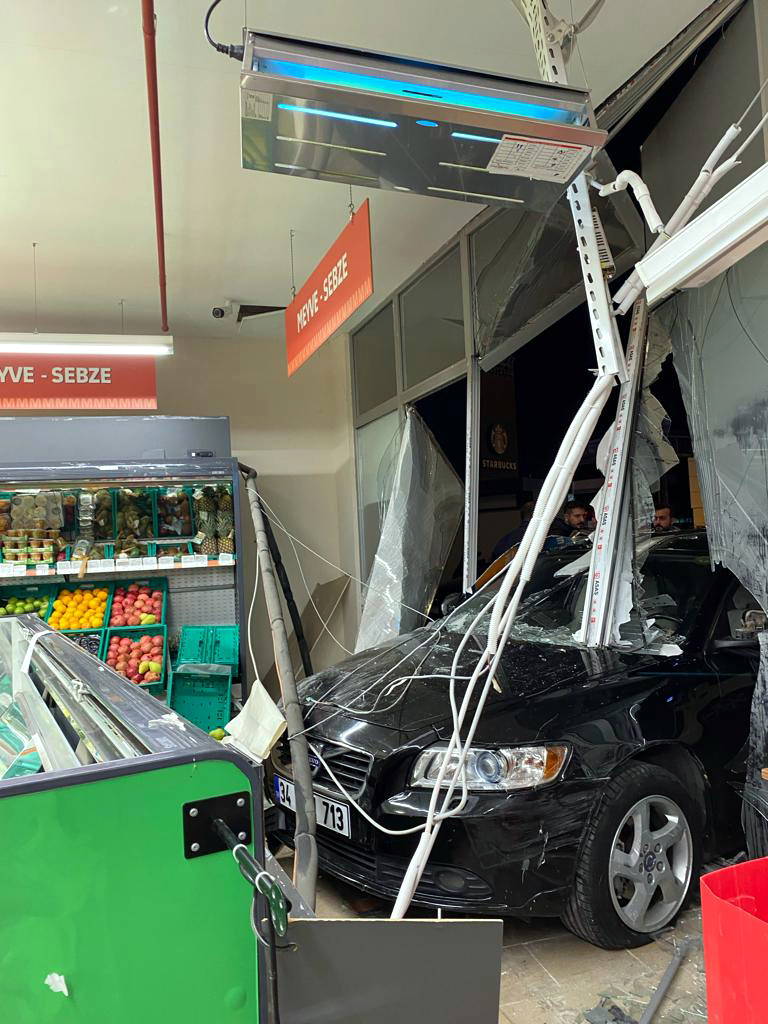 Üniversite Mahallesi'ndeki Firuzköy Bulvarı üzerinde, dün saat 20.30 sıralarında Tolgahan K. yönetimindeki 34 HLJ 713 plakalı otomobil, sürücüsünün direksiyon hakimiyetini kaybetmesi sonucu bir markete girdi.