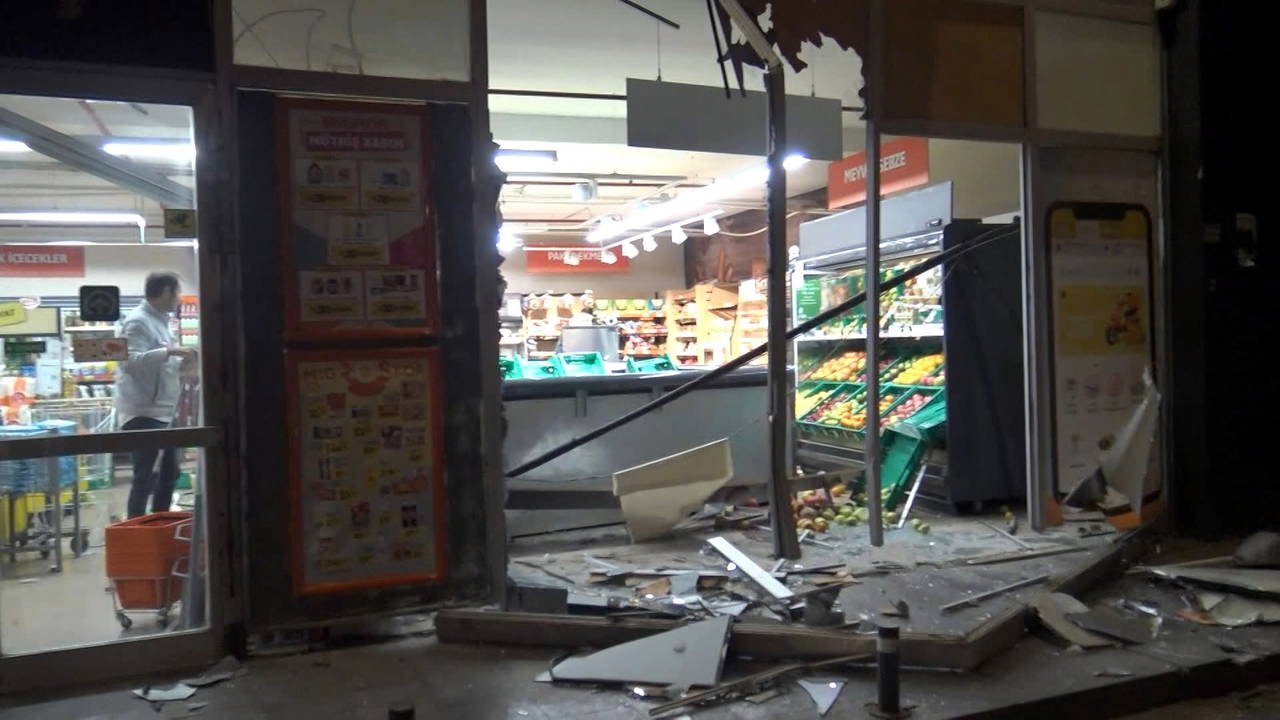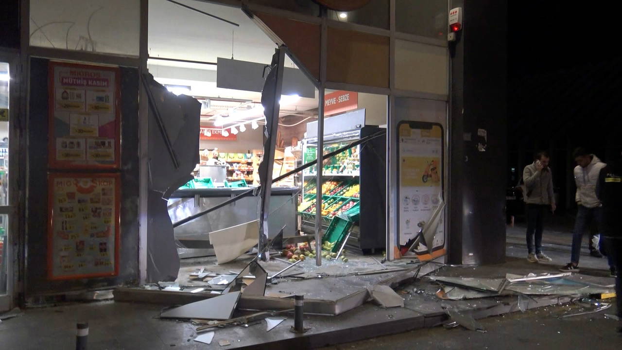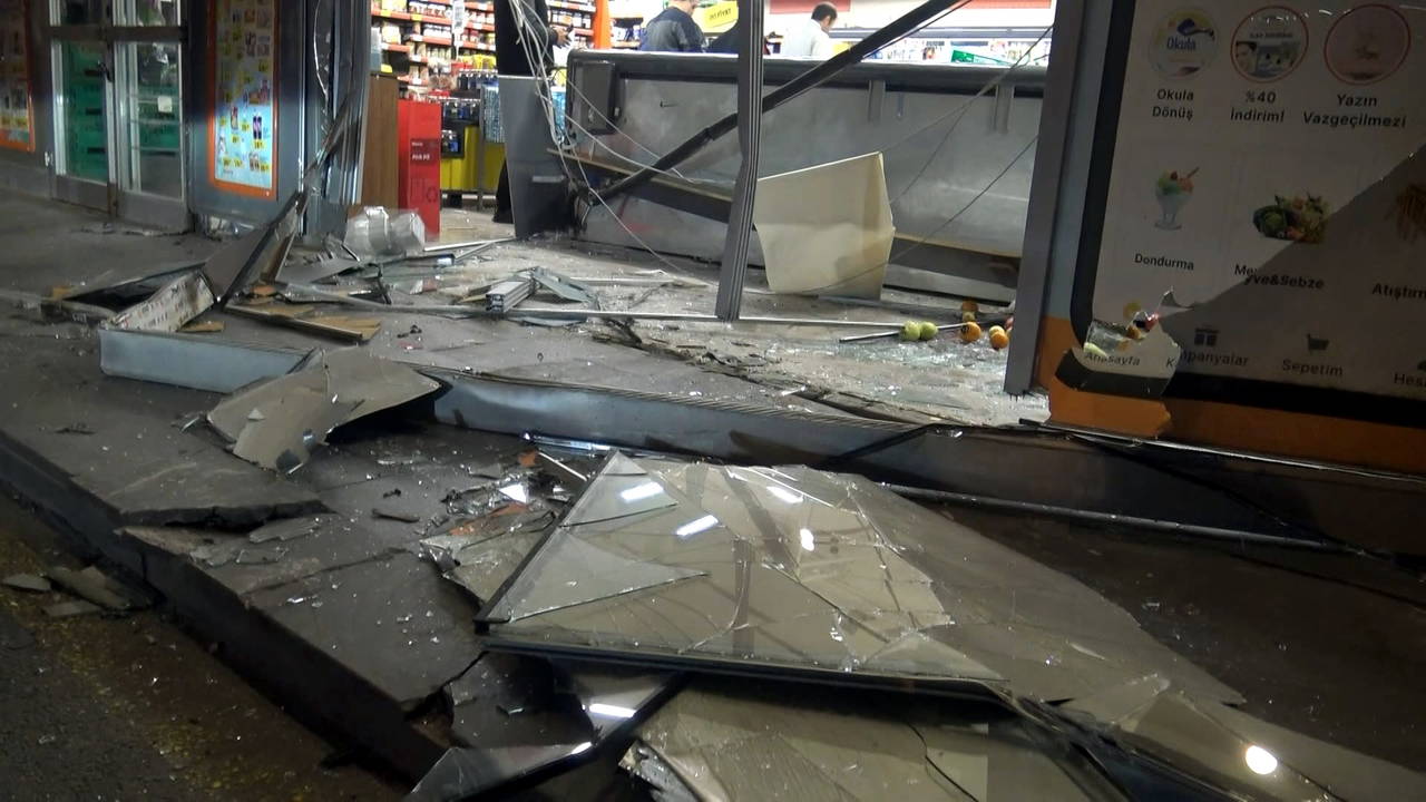 Marketin ön cephesindeki camlar, büyük bir gürültü ile dağıldı.