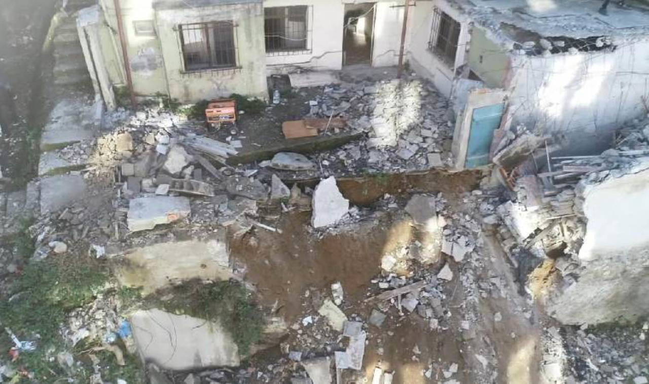 Edinilen bilgiye göre; daha önce kentsel dönüşüm için boşaltılan binanın önünde depo olarak kullanılan bölüm, toprak kaymasıyla ön taraftaki sitenin çocuk parkına düştü.