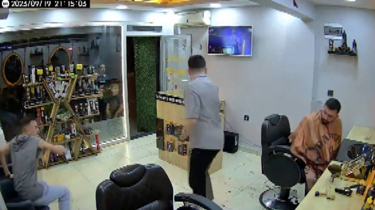 Müşteri ve çevredekiler kısa süreli panik yaşarken kuaför patlayan makineyi hemen yere bıraktı.