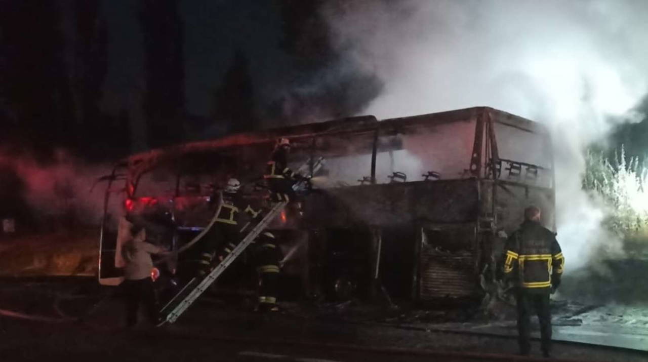 İhbar üzerine bölgeye polis ve itfaiye ekipleri sevk edildi. Ekiplerin müdahalesiyle söndürülen yangında, yolcu otobüsü kullanılamaz hale geldi. Olayda yaralanan olmadığı öğrenildi.