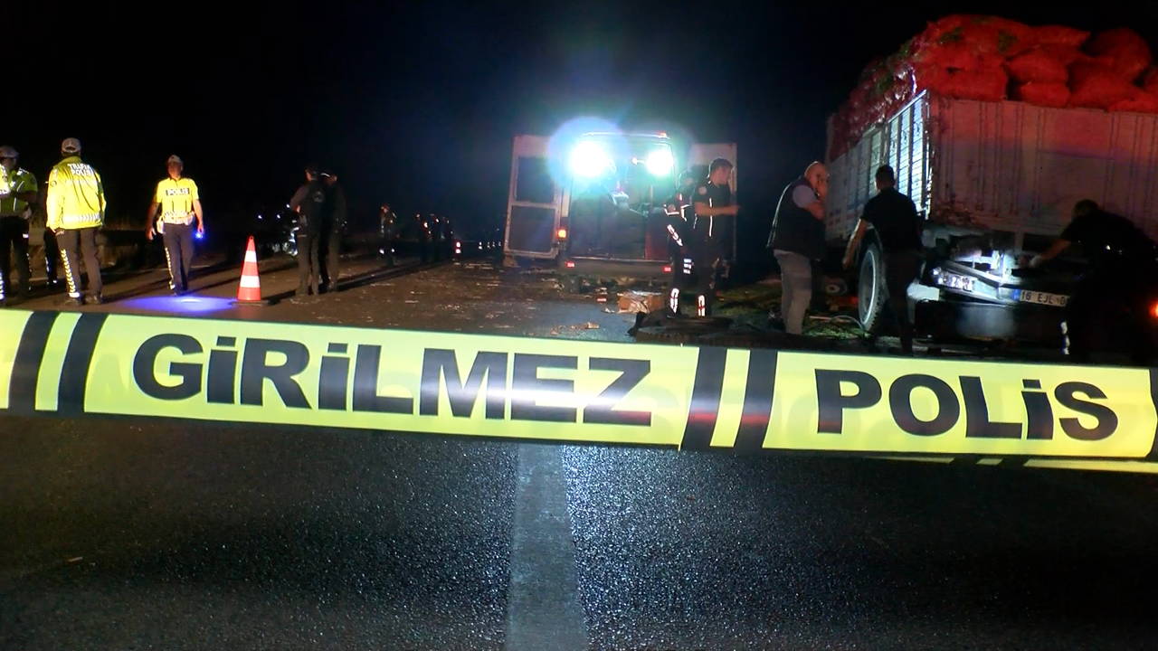 İstanbul- Bursa- İzmir Otoyolu, Nilüfer ilçesi, Doğanköy mevkisinde, dün saat 21.30 sıralarında Bursa’dan İzmir istikametine maden ocağında kullanılmak üzere dinamit taşıyan sürücüsü ve plakası açıklanmayan kamyon, önünde giden Naci A. yönetimindeki 16 EJL 05 plakalı sebze yüklü kamyonete çarptı.