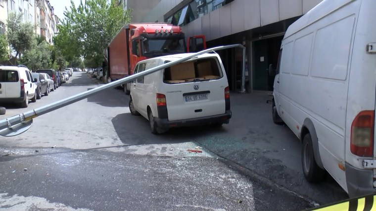 Kaldırıma çıkan kamyonet önce bir büfenin balkonuna ardından elektrik direğine çarparak durabildi. Kazanın etkisi ile direk sokakta park halinde bulunan hafif ticari aracın üzerine devrildi.