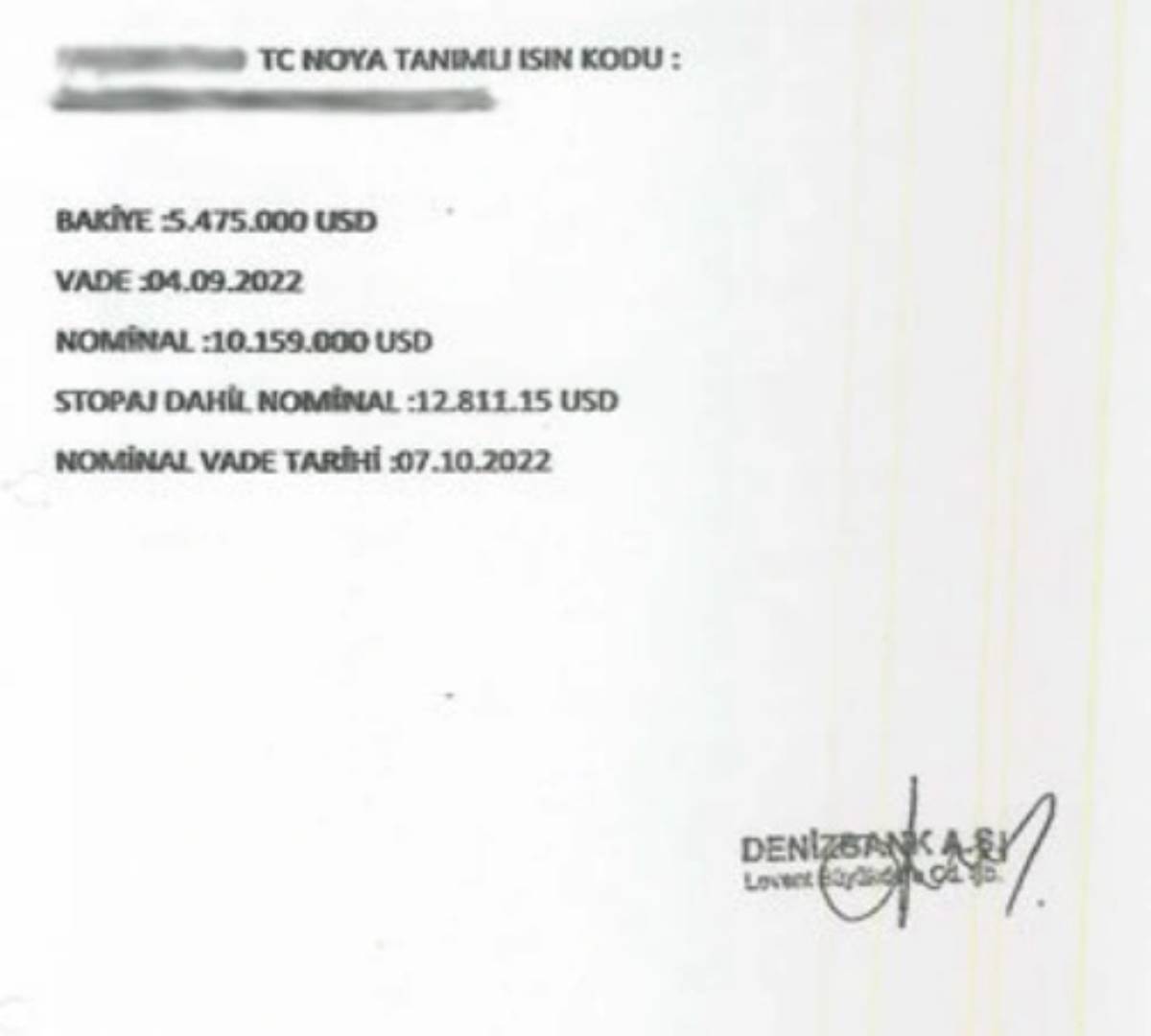Nominal ödenecek tutar olarak ise 10 milyon 159 bin dolar. Yani Selçuk İnan’ın 33 gün için 4 milyon 684 bin dolar faiz alacağı anlatılıyor. Selçuk İnan’ın avukatı suç duyurusunda, Seçil Erzan’ın imzaladığı 4 kağıt sunmuş. Bir diğer A4 kağıtta da ne tarih ne antet ne de belge niteliği var. Bakiyenin 2.5 milyon dolar, işlem tarihinin 30 Eylül 2022, vade tarihinin 31 Ekim 2022 olduğu yazıyor. A4 kağıtta nominal ödenecek tutar olarak 3 milyon 675 bin dolar belirtilmiş. Yani Seçil Erzan, Selçuk İnan’ın 2.5 milyon dolarına 31 günde 1 milyon 175 bin dolar faiz vaat etmiş. Suç duyurusunda Selçuk İnan’ın, toplam 1.5 milyon dolar alacağının kaldığı anlatıldı."