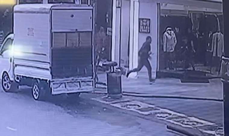 Güvenlik kamerasına yansıyan görüntülerde, şüphelinin işyerinden çıktıktan sonra koşarak kaçtığı görülüyor.