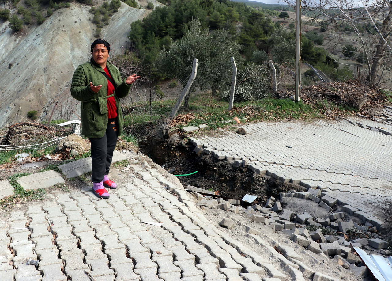 Fay hattı üzerinde olan yolun bir kısmı çökerken, Hatice Renkliöz'e ait müstakil evin ise yönü değişti. Evin zemininde de boşluklar meydana geldi.