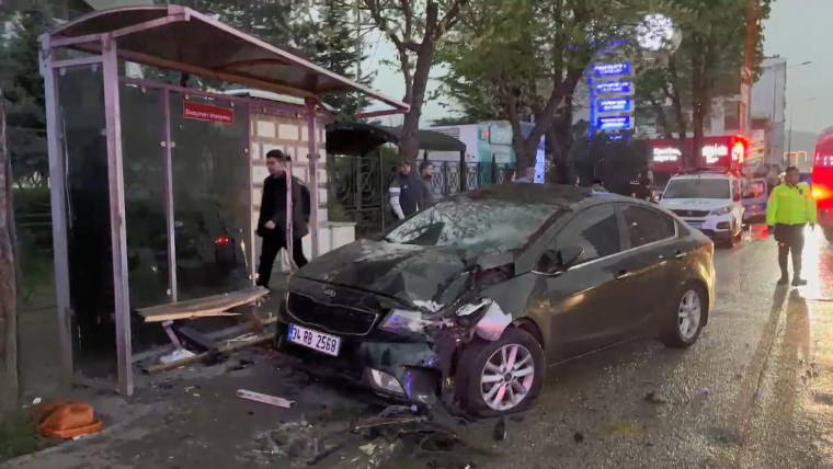 Yabancı uyruklu Alaa Kasaab yönetimindeki otomobil, sürücüsünün direksiyon kontrolünü yitirmesi sonucu otobüs durağına çarptı.
