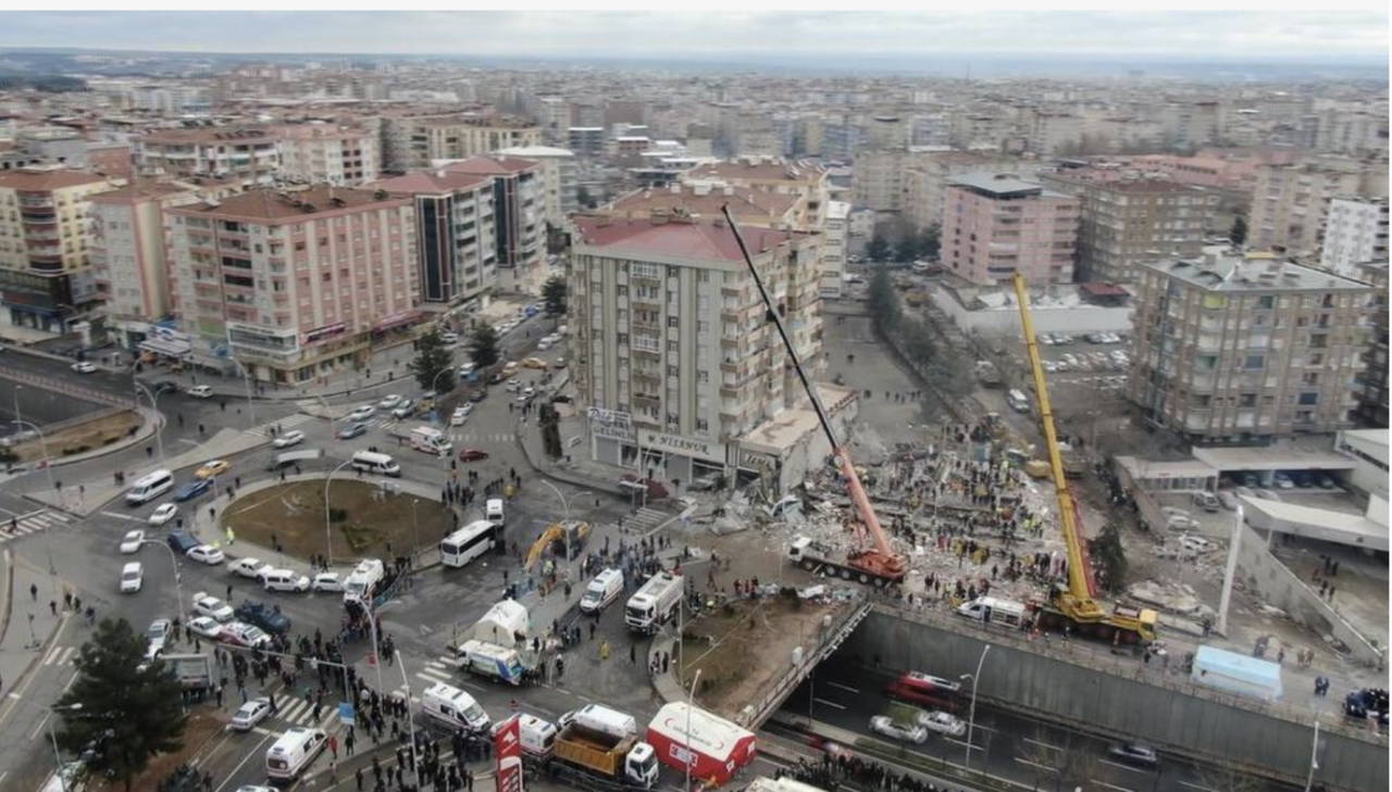 Kahramanmaraş'ta meydana gelen 7.7 ve 7.6 büyüklüğündeki depremlerden etkilenen 10 ilden biri olan Diyarbakır’daki yıkılan binaların enkazları havadan görüntülendi.