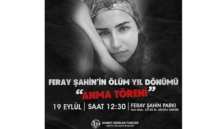 Mersin’de 19 Eylül 2017 tarihinde katledilen üniversite son sınıf öğrencisi Feray Şahin için Mezitli’de ilçe belediyesi tarafından adının verildiği parkta anma düzenlenecek.