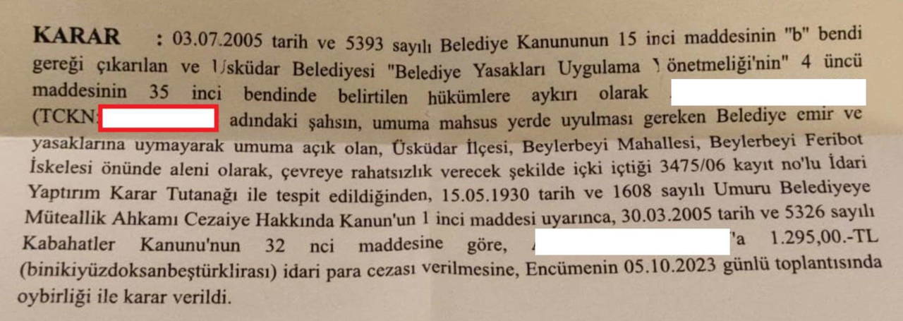 İstanbul Üsküdar'dan gelen son haber ise alkol yasağının fiilen hala uygulamada olduğunu gözler önüne serdi. Üsküdar'da kamuya açık içki tüketen bir vatandaşa, "çevreye rahatsızlık verecek şekilde içki içtiği" iddiasıyla Emniyet birimleri tarafından bin 295 TL para cezası uygulandı.