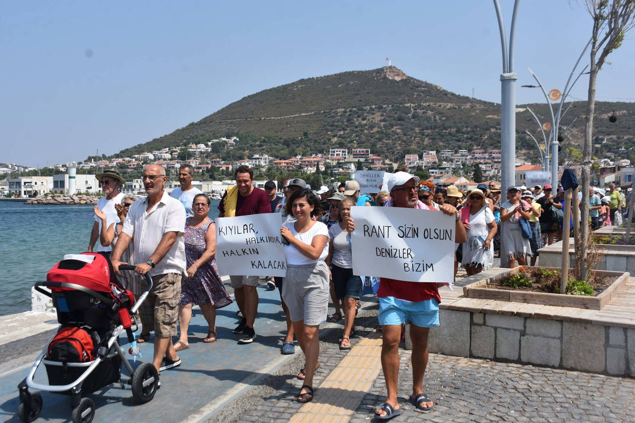 Havlu hareketi başlatarak, Yeni Foça Sahili'nde bir araya gelen grup, ellerinde 'Kıyılar halkındır', 'Sahiller bizim işgaliyeye son', 'Cennet sahiller birilerine para basıyor, halk uzaktan bakıyor', 'Bu ne beach im iş' yazılı dövizler taşıdı.