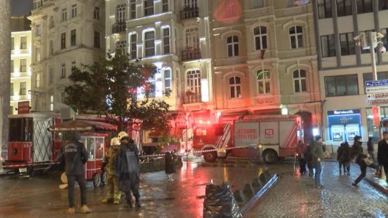 İhbar üzerine olay yerine giden itfaiye ekipleri çevrede güvenlik önlemi alırken, Galata Kulesi'nden sarkan demir parçaları halatlarla sabitlendi.