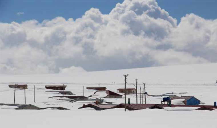 Ardahan ile Artvin'in Ardanuç ilçesi sınırında yer alan ve yazın yaylacıların kullandığı yaklaşık 300 haneli, 2 bin 581 rakımlı Bülbülan Yaylası'ndaki evlerin kara gömüldüğü görüldü.