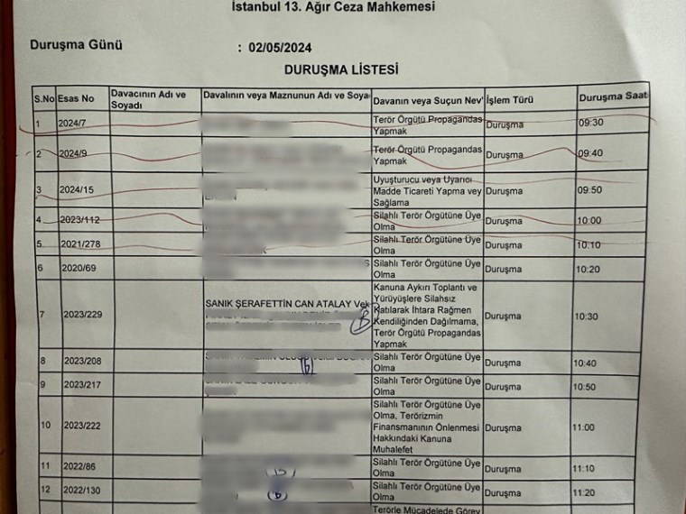Gösteriye katılan diğer sanıklar için dava sürmüş, milletvekili seçilen Atalay’ın dosyası ise ayrılmıştı.