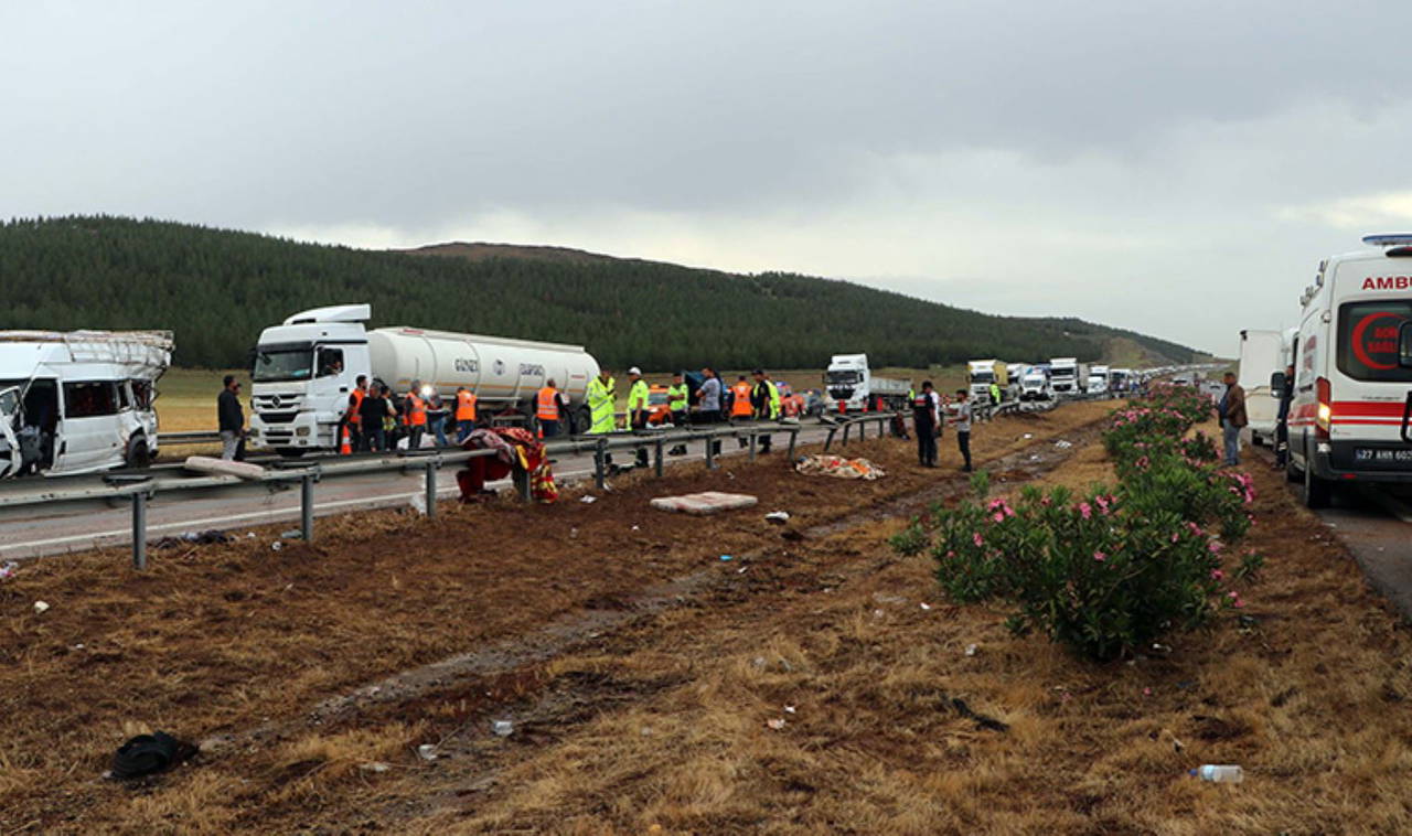 Bu sırada arkadan gelen 2 TIR, bir hafif ticari araç ve tarım işçilerini taşıyan servis minibüsü kazaya karıştı. Kazayı görenler durumu 112 Acil Çağrı Merkezi ekiplerine bildirdi.