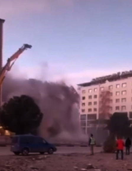 Ekiplerin iş makineleriyle yaptığı çalışma sırasında apartman bir anda çöktü.