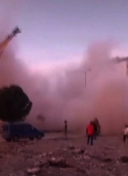 Çökme ile etrafı toz bulutu kaplarken yaşananlar cep telefonu kamerasıyla görüntülendi.