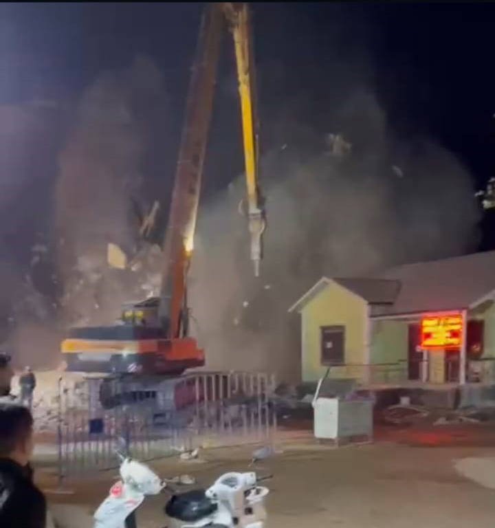 Ekiplerin iş makineleriyle gece saatlerinde yaptığı çalışma sırasında bina, bir anda çöktü. Büyük gürültüyle yıkılan apartmandan yükselen toz bulutu çevreyi kapladı.