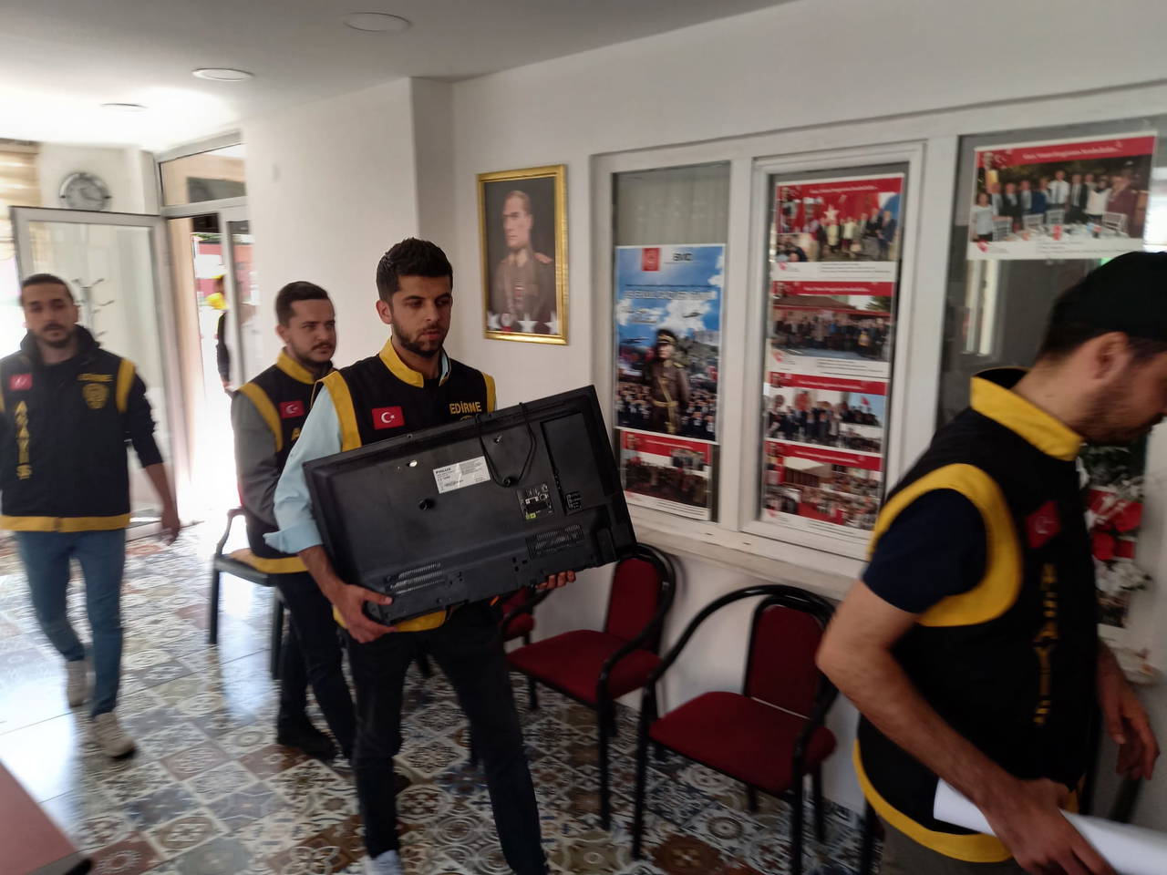 Talatpaşa Mahallesi Eski İstanbul Caddesi'ndeki Türkiye Muharip Gaziler Derneği Edirne Şubesi'ne 2 gün önce binanın arka penceresinden giren şüpheli veya şüpheliler, güvenlik kamerası kablolarını kesip kamerayı kırdıktan sonra bilgisayar, televizyon ve içinde önemli evrakın olduğu kasayı çaldı.