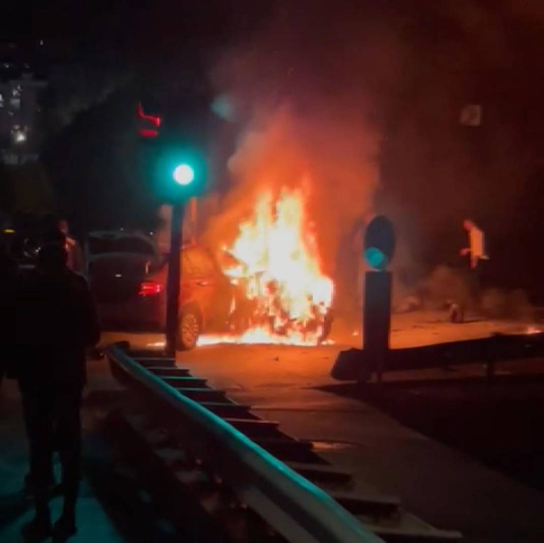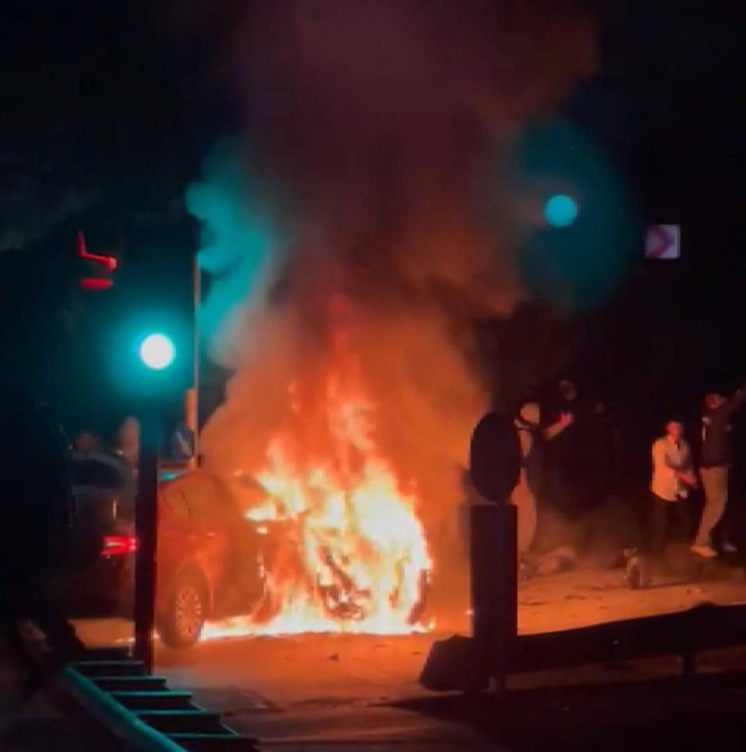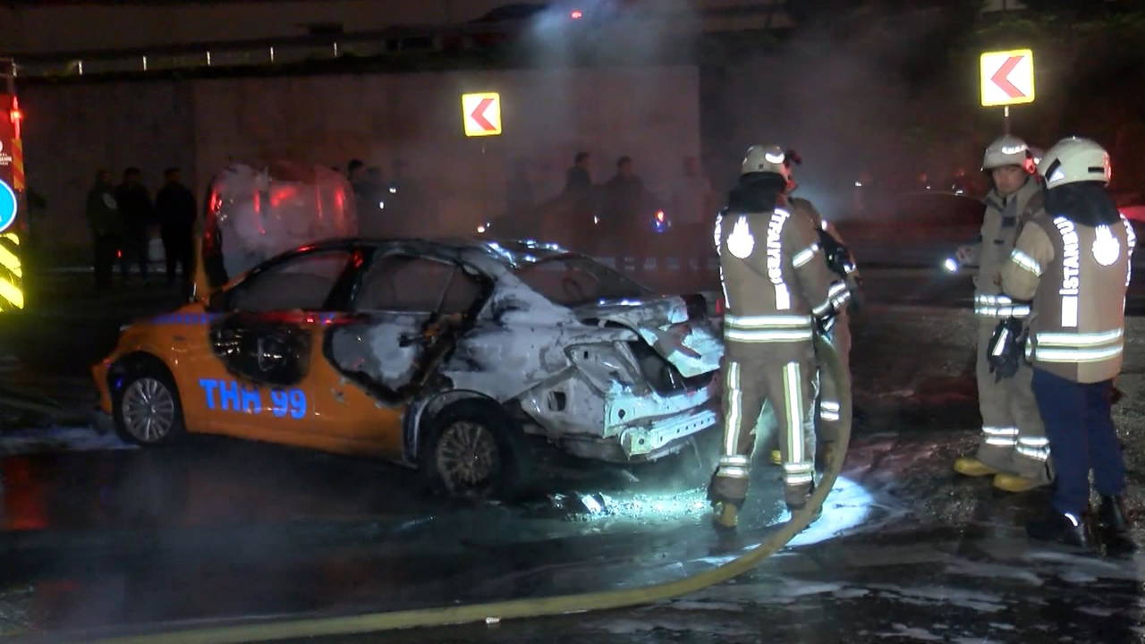 Kaza sonrası takside ve motosiklette çıkan yangın, cep telefonu görüntülerine yansıdı. Görüntülerde motosiklet ve taksinin alev alev yandığı, vatandaşların ise yardım için seferber olduğu görüldü.