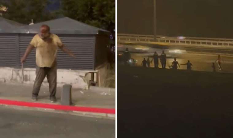 Gaziosmanpaşa'da bir alışveriş merkezinin önünde elindeki sopa ve kesici aletle hem kendisine hem de çevreye zarar veren kişi, polise zor anlar yaşattı. Polisin uyarılarını dikkate almayan şüpheli bir süre sonra TEM Otoyolu'na girerek hızla ilerleyen araçların arasından karşı şeride geçti. Şüpheli karşıdan karşıya geçerken trafik kazasına neden oldu. TEM Otoyolu'nda trafiği felç eden anlar, cep telefonuyla görüntülendi.