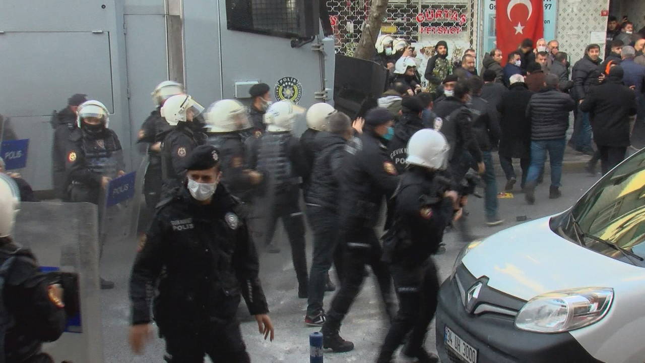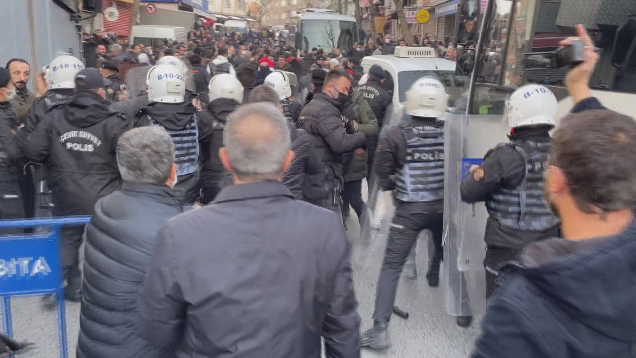 Pazarcıların slogan atması ve yürüyüşlerini sürdürmesi nedeniyle polisle aralarında arbede yaşandı. Polis ekipleri gazla müdahale etti. Grup ara sokaklara dağılarak polis barikatını aşmaya çalıştı, polisle tekrar karşı karşıya geldi. Ekipler tekrar pazarcılara müdahale etti.