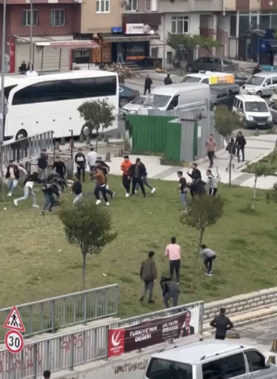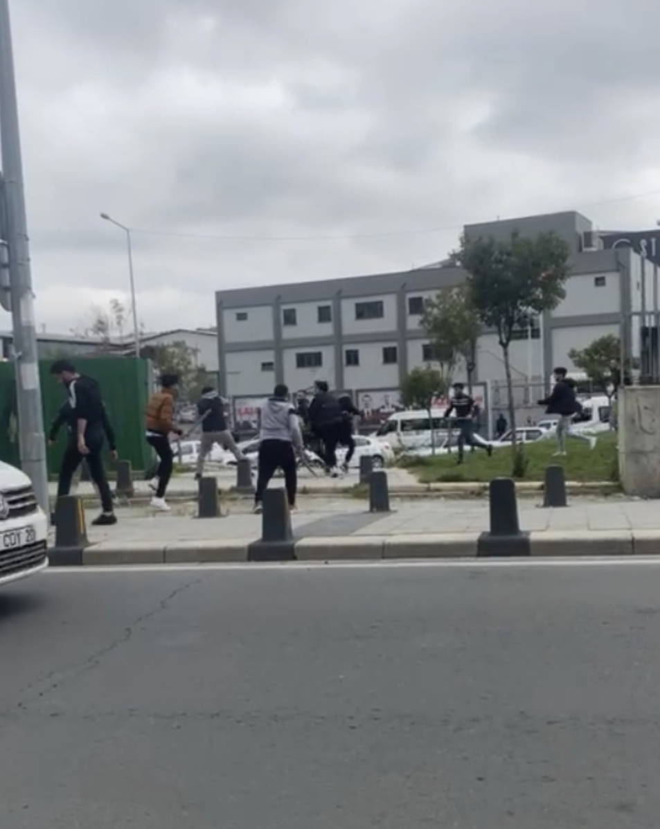 Sopalarla, kaldırım taşlarıyla, tekme ve yumruklarla birbirine saldıran tarafların kavgası dakikalarca sürdü.