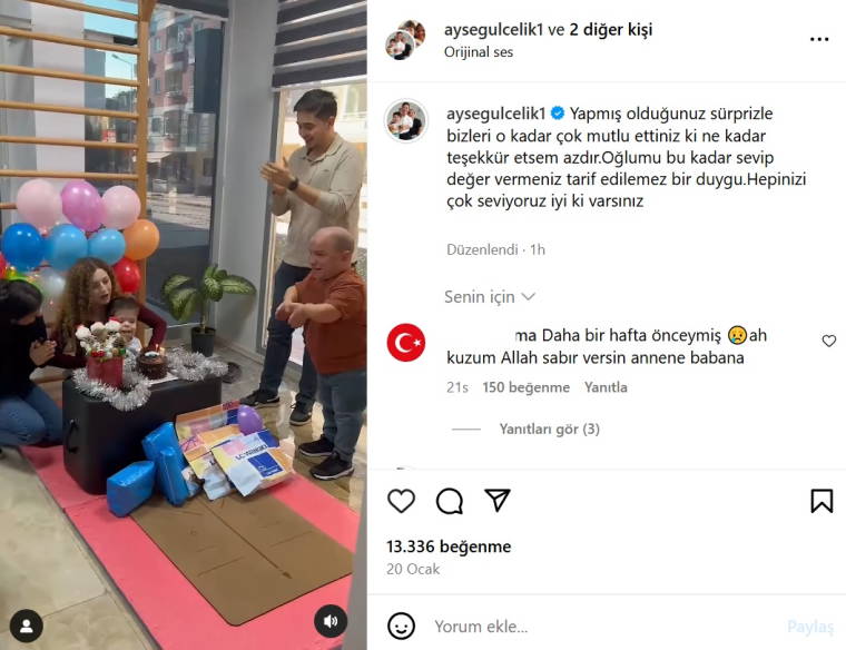 Acı haberi sosyal medyadan duyuran Ayşegül Çelik, 'Aras'ımız melek oldu' diyerek paylaşım yaptı. Çiftin 20 Ocak'ta Aras'ın doğum gününü kutladıkları paylaşımlar dikkat çekti.