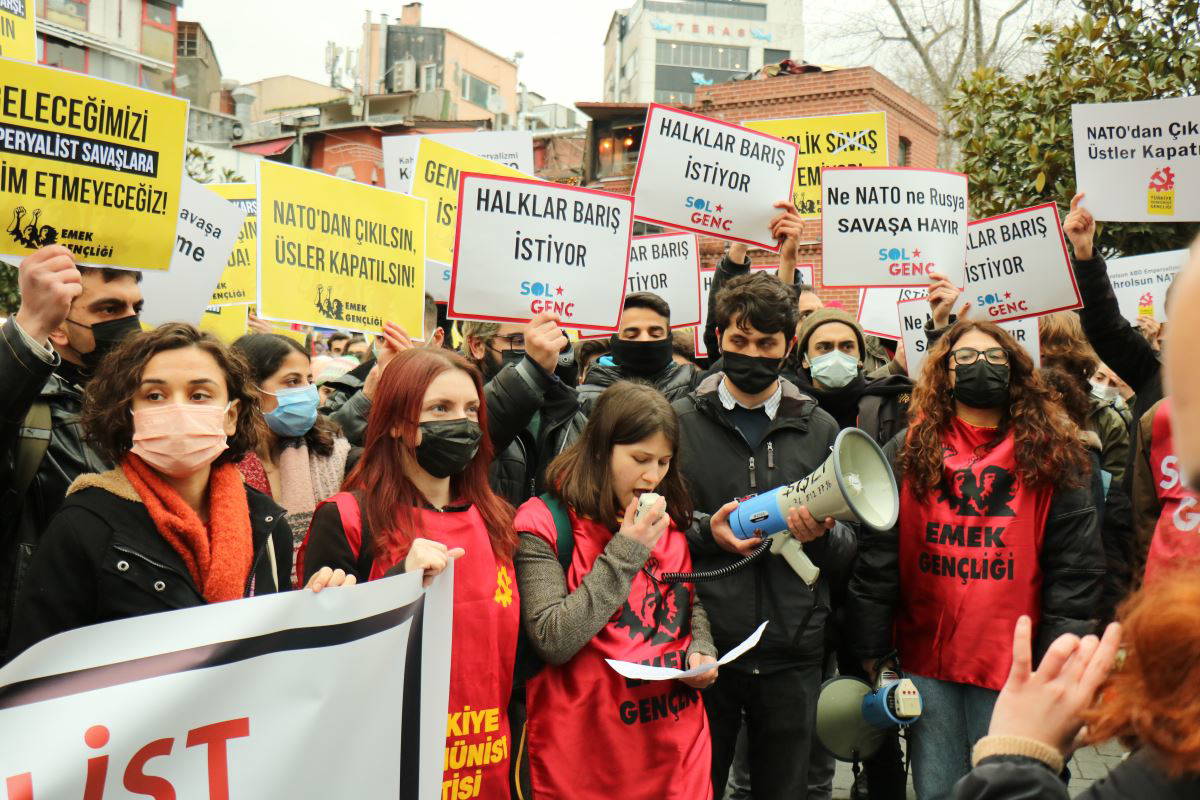 Rusya'nın Ukrayna'ya yönelik saldırısını ve NATO’nun yayılmacı politikalarını protesto etmek amacıyla Türkiye Komünist Gençliği, Sol Genç ve Emek Gençliği ortak eylem düzenledi. Beşiktaş Meydanı'nda bir araya gelen gençlik örgütleri tarafından yapılan basın açıklamasında "Hem ABD’nin NATO eliyle sürdürdüğü genişleme politikasına hem de Rusya saldırganlığına aynı anda karşı çıkıyoruz" denildi.