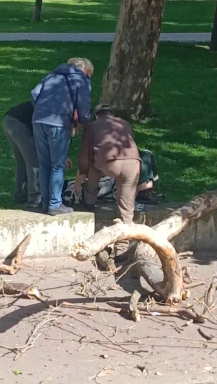 Olay, dün saat 16.00 sıralarında Beyoğlu Taksim Gezi Parkı’nda meydana geldi. Edinilen bilgiye göre akşamüstü parkta dolaşan bir kadın, bir süre sonra oturmak istedi. Dakikalarca oturan kadının üstüne ağaçtan kopan büyük bir dal parçası düştü. Başına çarpan parçası kırılarak etrafa saçılırken, kadın ise bayıldı. Çevredeki yurttaşların ihbarı üzerine olay yerine sağlık ve polis ekibi sevk edildi.