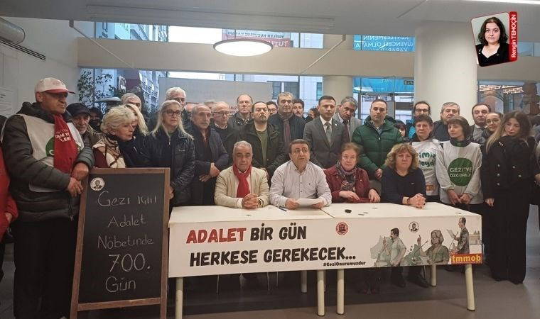 Basın açıklamasını okuyan TMMOB İstanbul İl Koordinasyon Kurulu Sekreteri Seyfettin Avcı, “Ülkemizin her bölgesinden, her yöresinden yurttaşlarımızın itirazlarını, taleplerini haykırdığı, ülke tarihinin en görkemli halk hareketlerinden biri olan Gezi Direnişi ’ne suç isnat etmek, onurlu direnişimizi lekelemek amacıyla iktidarın güdümündeki yargı mensupları tarafından verilen hukuksuz tutuklama kararının üzerinden 700 gün geçti.