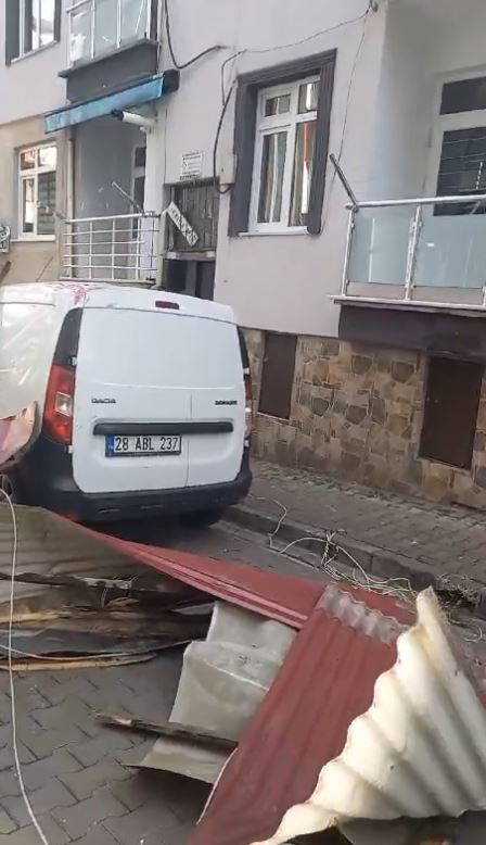 Giresun'da öğle saatlerinde fırtına, etkisini gösterdi. Nizamiye Mahallesi Orman Yılmaz Caddesi'nde fırtına nedeniyle 6 katlı apartmanın çatısı uçtu. Kentin başka noktalarında da evlerin çatısı uçarak yola savruldu. Uçan çatılar nedeniyle park halindeki bazı araçlarda hasar oluştu.