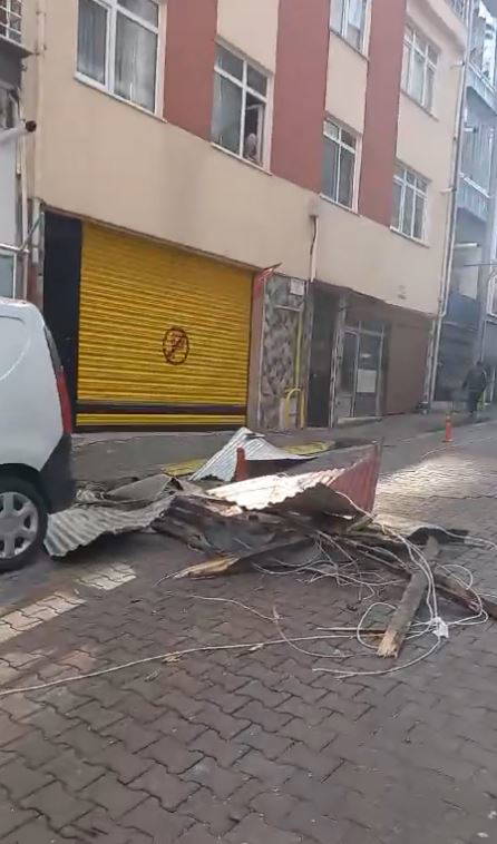 Çatı uçması ihbarı yapılan bölgelere polis, itfaiye ve belediye ekipleri sevk edildi. Ekipler, çevrede güvenlik önlemi alırken yollar, yaya ve araç trafiğine kapatıldı.
