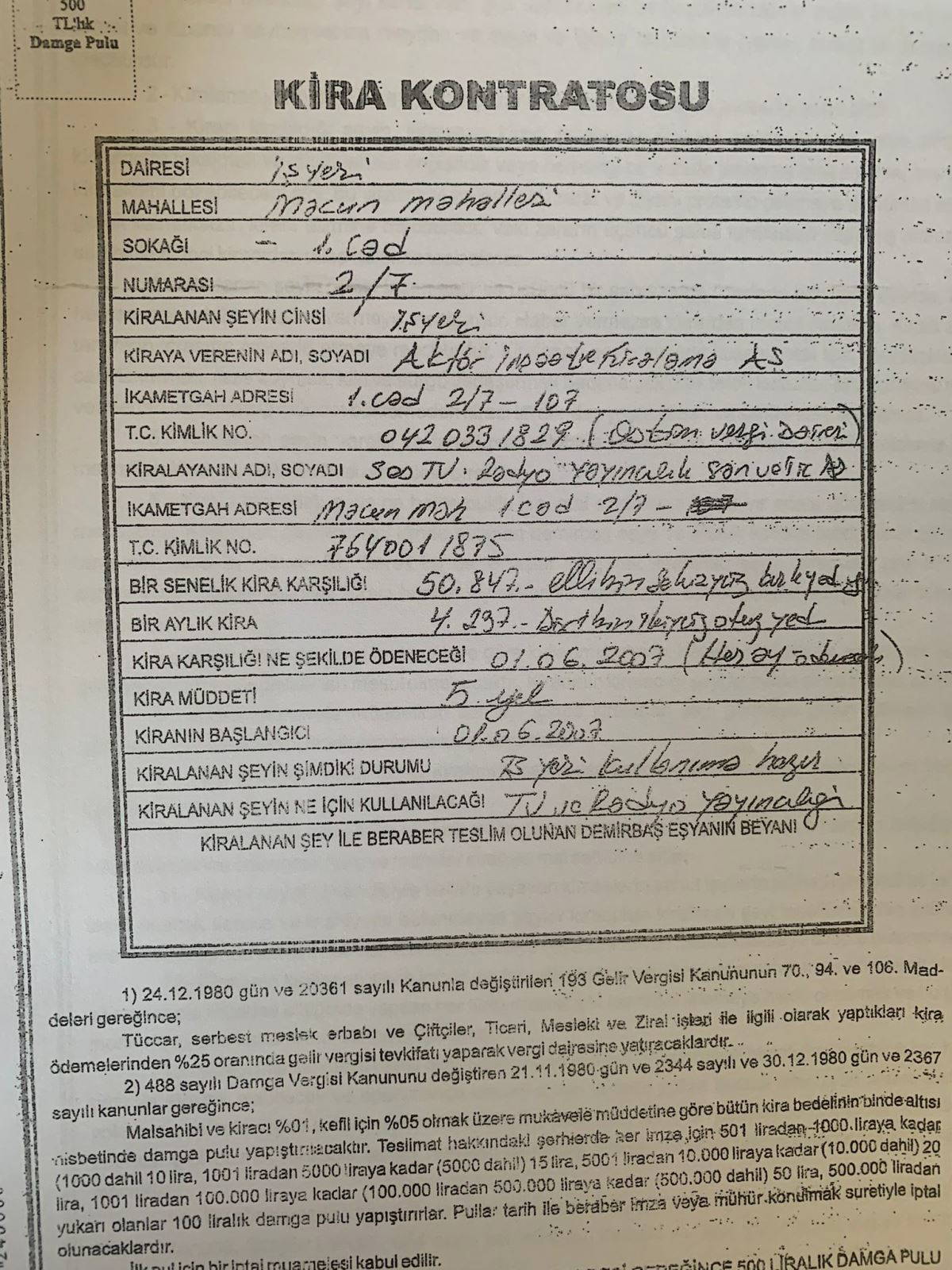 Daha sonra Aktör İnşaat ve Kiralama AŞ’nin kendi malı olan iki daireyi Beyaz TV’ye kiraladığını belirten Emir, şunları kaydetti: