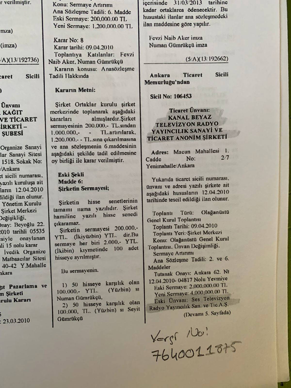 “Aktör İnşaat ve Kiralama AŞ’ye ait binanın 7 ve 8 numaralı dairesi, 2007 yılında Ses TV Radyo Yayıncılık’a kiralanıyor. Ses TV Yayıncılık 2010’da ticari unvanını Kanal Beyaz Televizyon Radyo Yayıncılık olarak değiştiriyor. Beyaz TV olan bu kanal, halen bu binayı kullanmaya devam ediyor. 15 Temmuz darbe girişimi sonrasında TMSF, Kayalar’a ait her şeye el koyuyor. Ancak Beyaz TV’nin kiraladığı bu iki daire Kaya ailesinde görünmediği için el koymuyor. Burada sormamız gereken soru: Bu binalara neden el konulmuyor?”