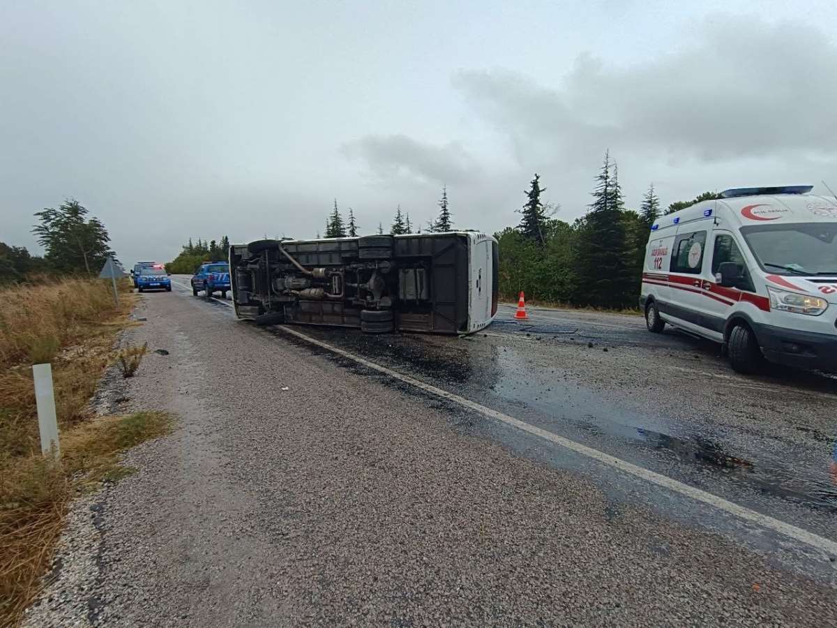 Edinilen bilgiye göre, Bayramiç Mahallesi mevkiinde R.E. (45) idaresindeki 10 DAV 90 plakalı minibüs, yağış nedeniyle kayganlaşan yolda sürücünün direksiyon hakimiyetini kaybetmesi sonucu devrildi.