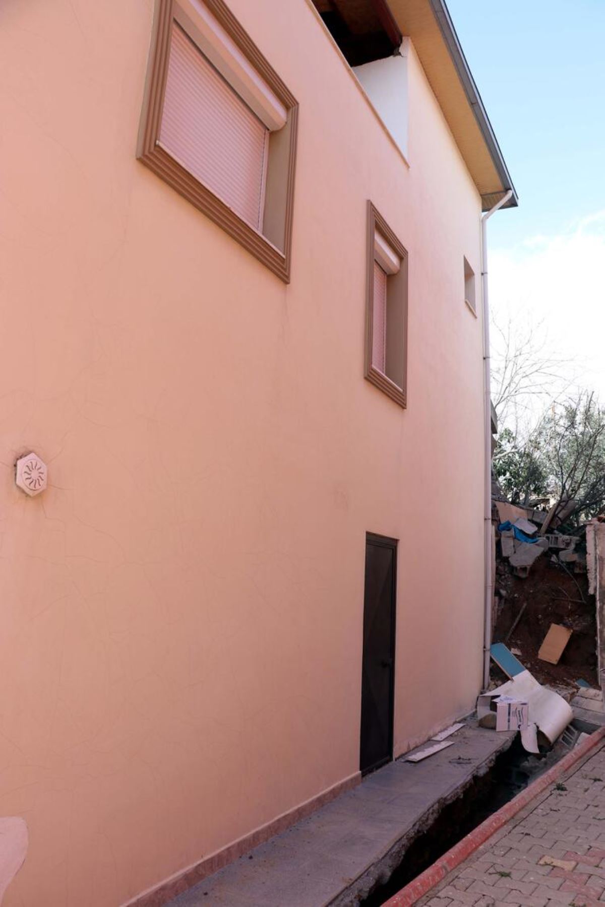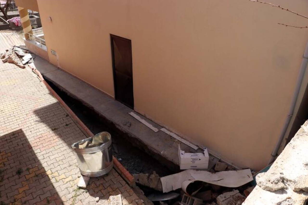 Binanın önünden fay hattının da geçtiği görüldü. Fay hattı, binanın önündeki bahçeyi çökertirken, altında da boşluk oluştuğu gözlendi.