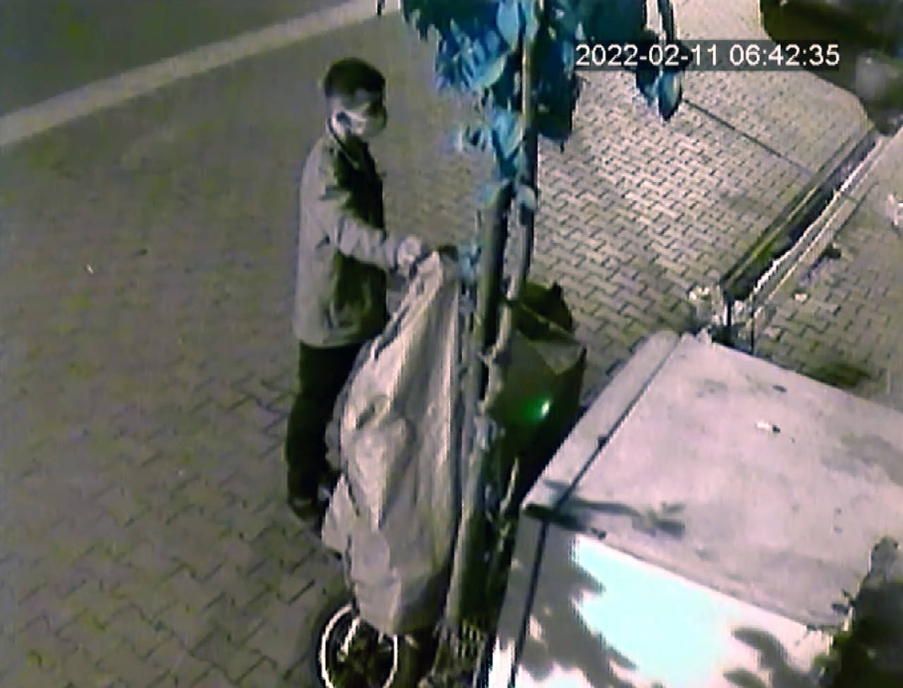 S.P.'nin emniyete şikayetiyle Oto Hırsızlık Büro Amirliği ekipleri çalışma başlattı. Bölgedeki güvenlik kamerası görüntülerini inceleyen polis, evin önüne gelen kişinin şarj kablosunu söktüğü elektrikli bisikleti çalıp, bölgeden ayrıldığını tespit etti.