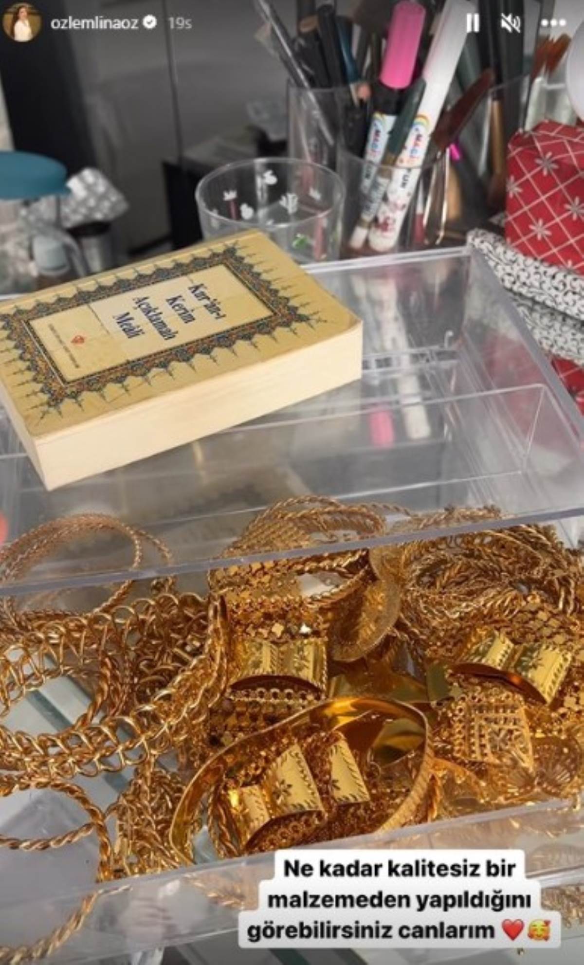 Güzellik merkezi sahibi Özlem Öz gündem olmalarının ardından dün Instagram hesabından "Ne kadar çok merak eden olmuş sahte imitasyon altınlarımı” notuyla paylaştığı videoda, “Size altınları sakladığım yeri göstereceğim. Evdeki kasamız arkadaşlar. Altın olduğu için arkadaşlar arada bir stres atmak için sıkıyoruz. Kusura bakmayın paylaştığım için, utanıyorum kendimden. Ama bir yerde de göstermek lazım" ifadelerini kullandı.