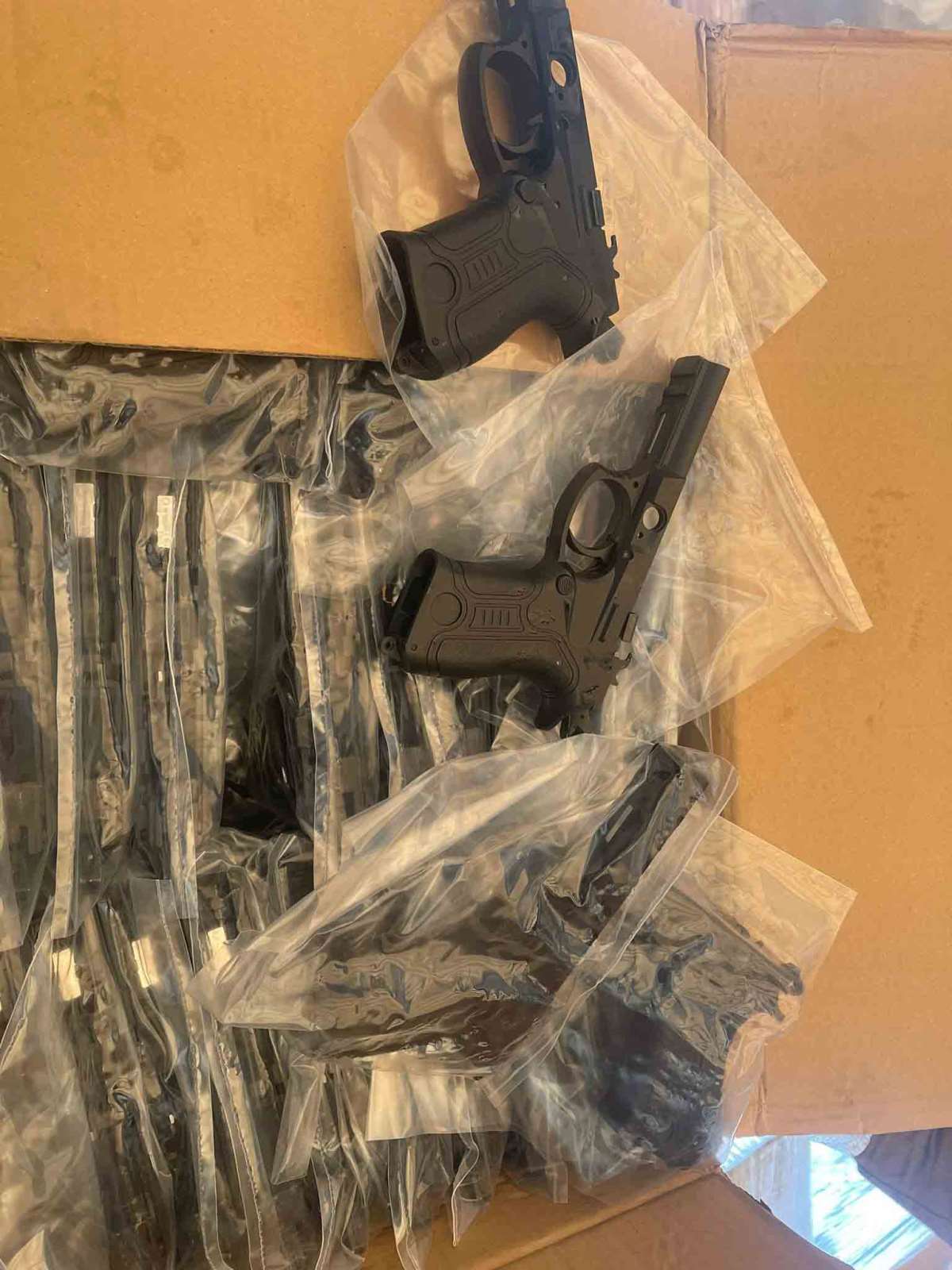 TIR'dan şüphelenerek arama yapan ekipler TIR'ın dorsesine zulalanmış şekilde 440 adet tabanca gövdesi, bin 485 adet tabanca sürgüsü, 2 bin 500 adet tabanca şarjörü ele geçirdi.