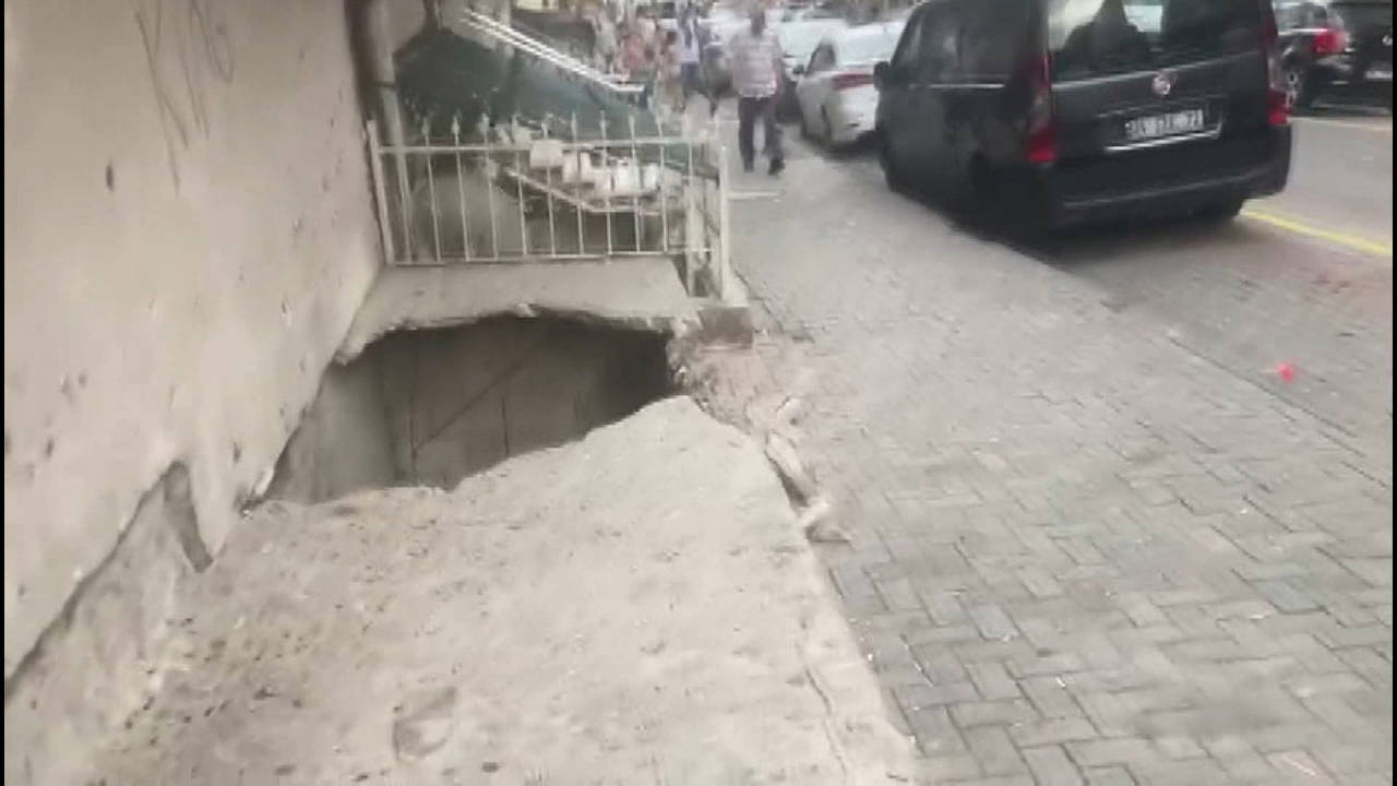 Güngören Akıncılar Mahallesi'nde dün saat 19.00 sıralarında; 5 katlı binanın hemen yanında bulunan beton zemin bir anda çöktü.