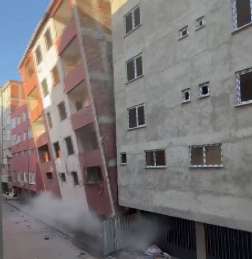 Balkon ve duvarlar yıkılırken, iki bina hızla boşaltıldı.