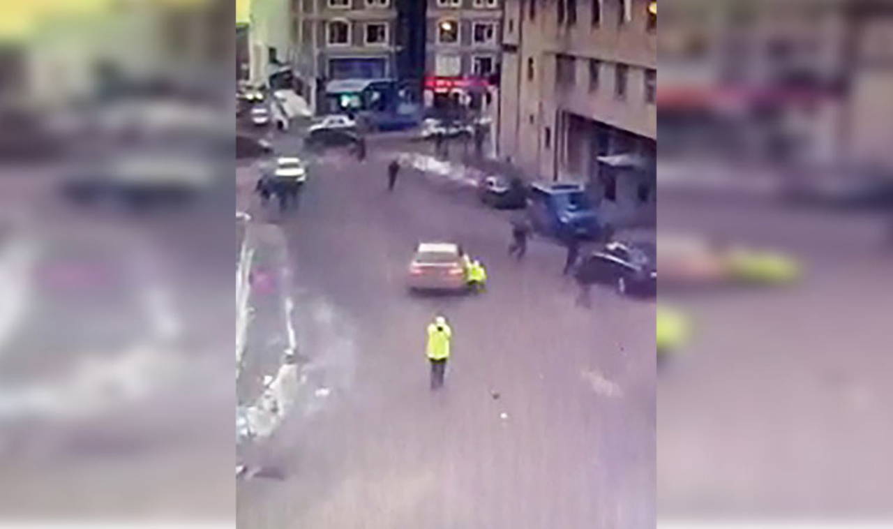 Hastaneye kaldırılan polis memuru N.D.'nin hayati tehlikesinin bulunmadığı öğrenildi. Olay, caddedeki bir iş yerinin güvenlik kamerasına yansıdı.