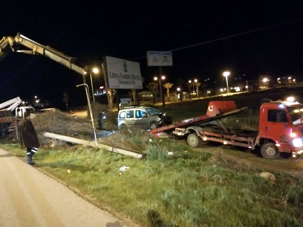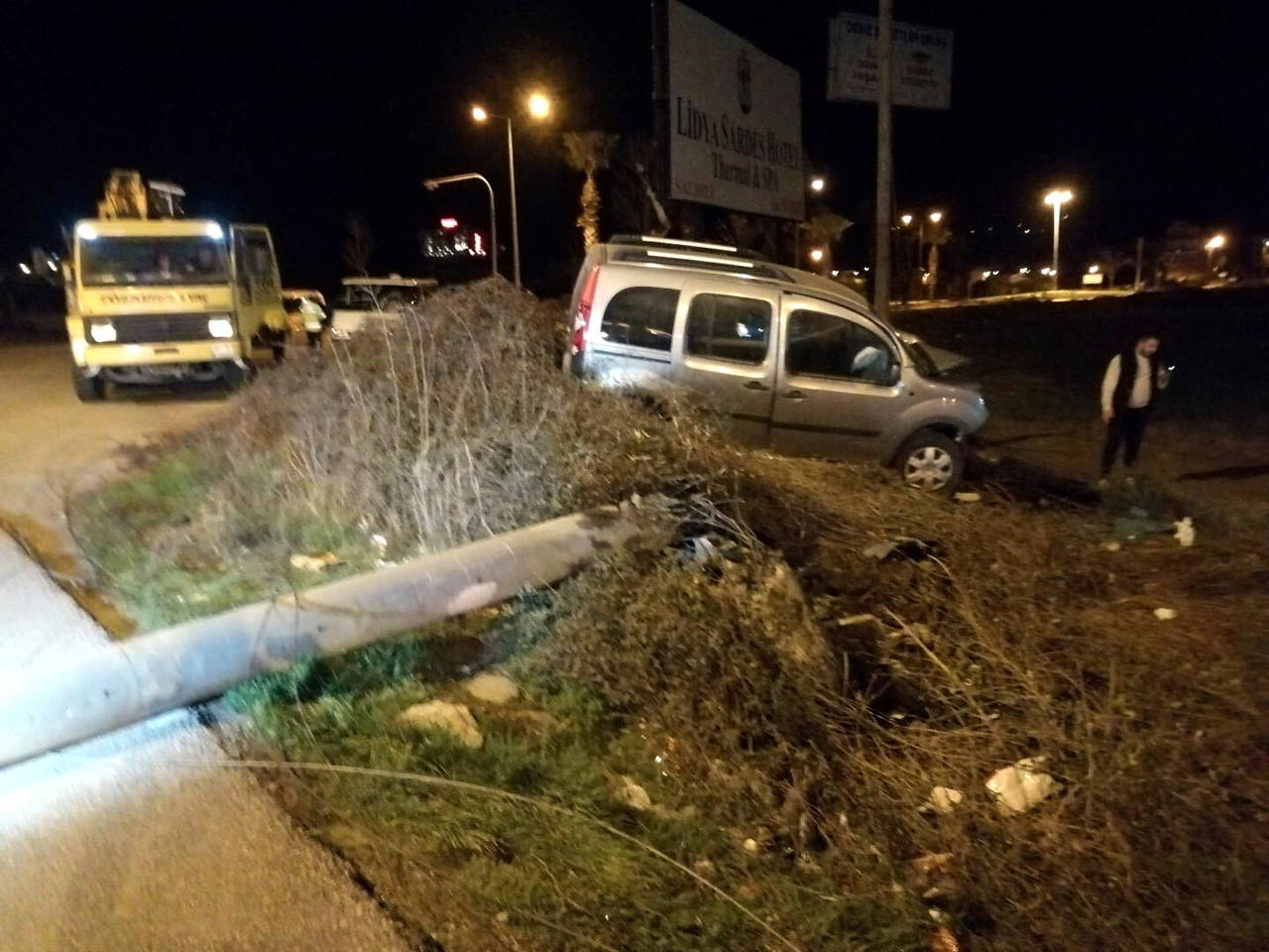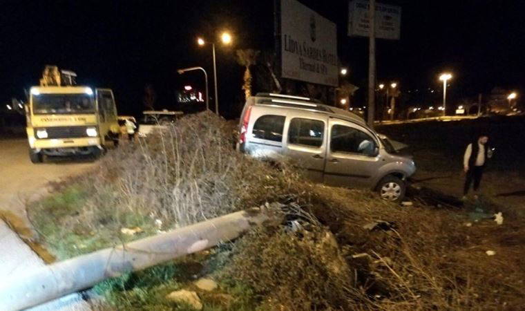 Sürücüsü belirlenemeyen 45 AAE 708 plakalı hafif ticari araç, saat 07.30 sıralarında İzmir-Ankara kara yolu Barış Mahallesi yakınlarında yol kenarındaki elektrik direğine çarparak devrildi.