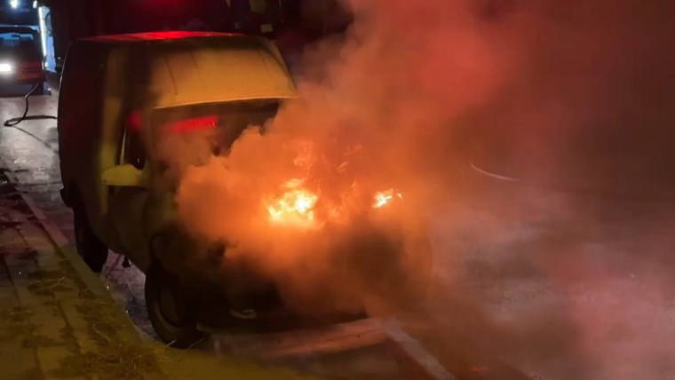 Olay, dün gece yarısı Ambarlı Mahallesi Tesisler Yolu'nda meydana geldi. 34 UY 3639 plakalı hafif ticari aracın motor bölümünden dumanlar yükseldi.